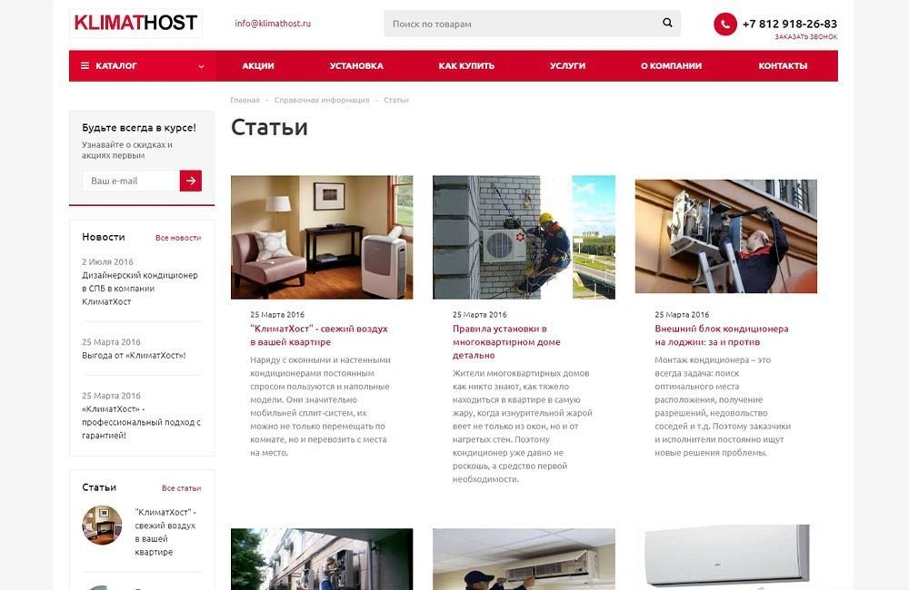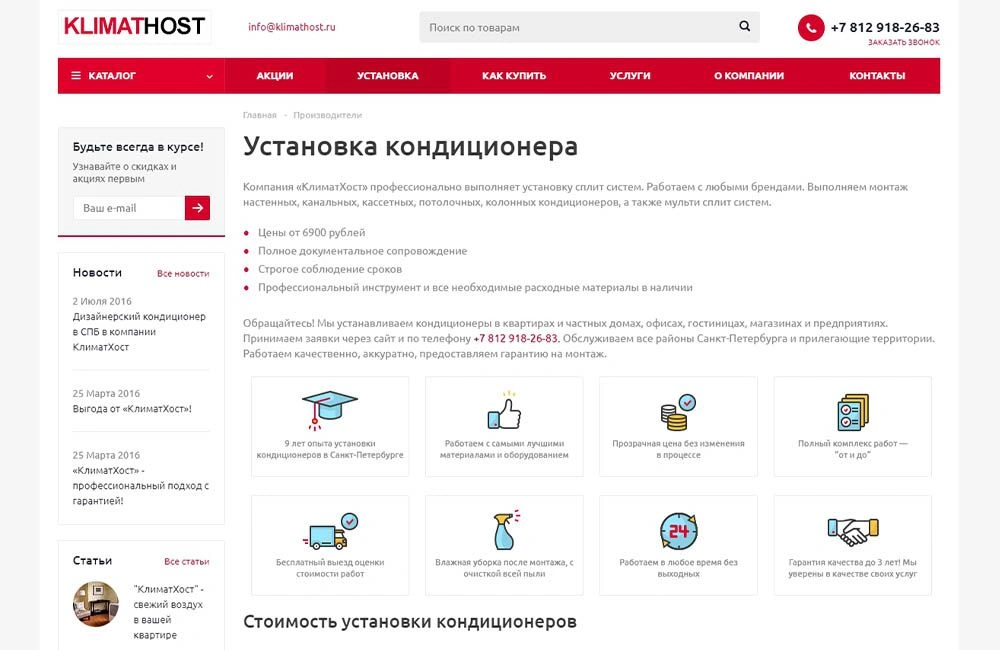 • Проанализирована ниша сайтов услуг по установке, обслуживанию и демонтажу кондиционеров