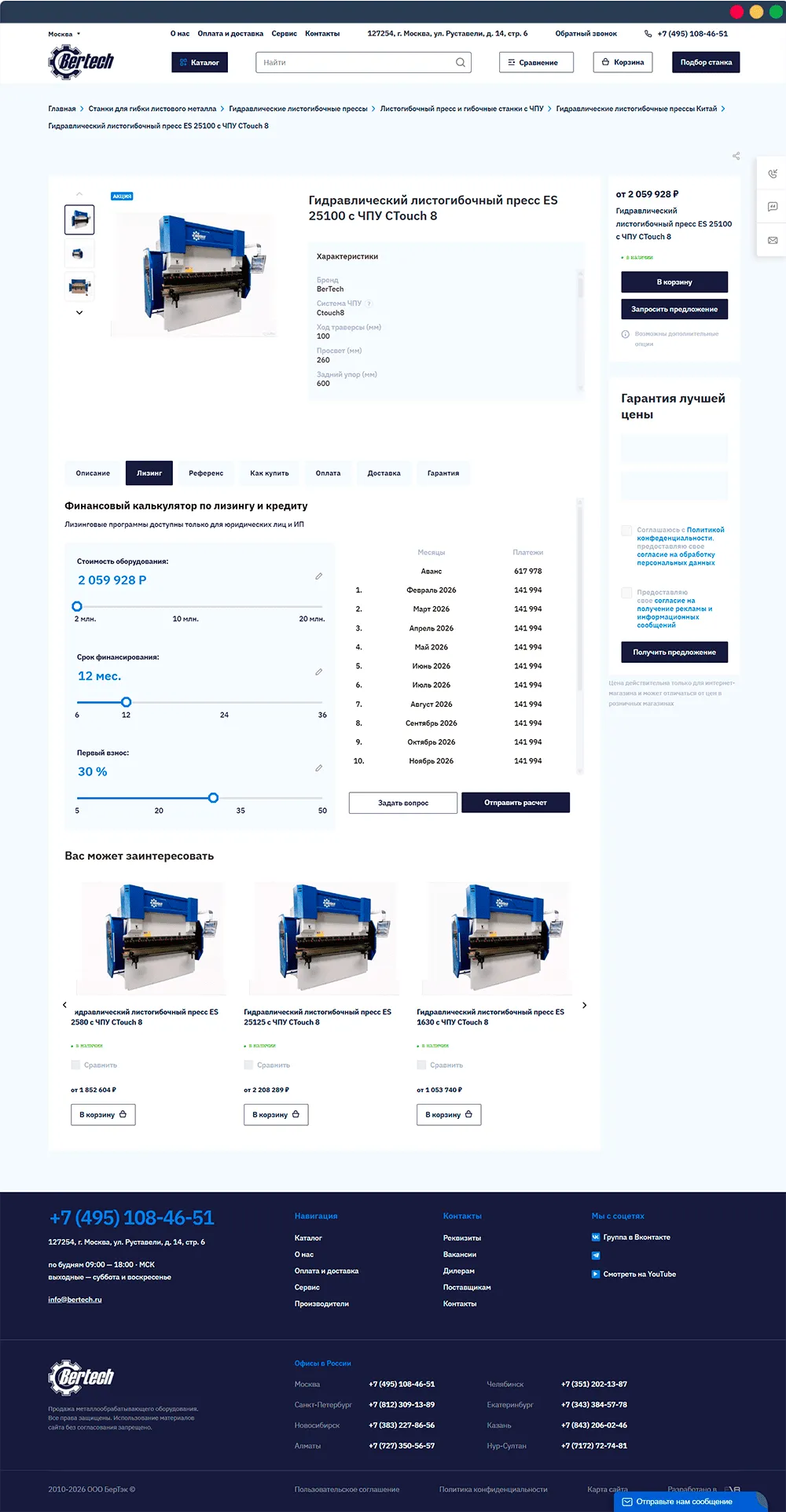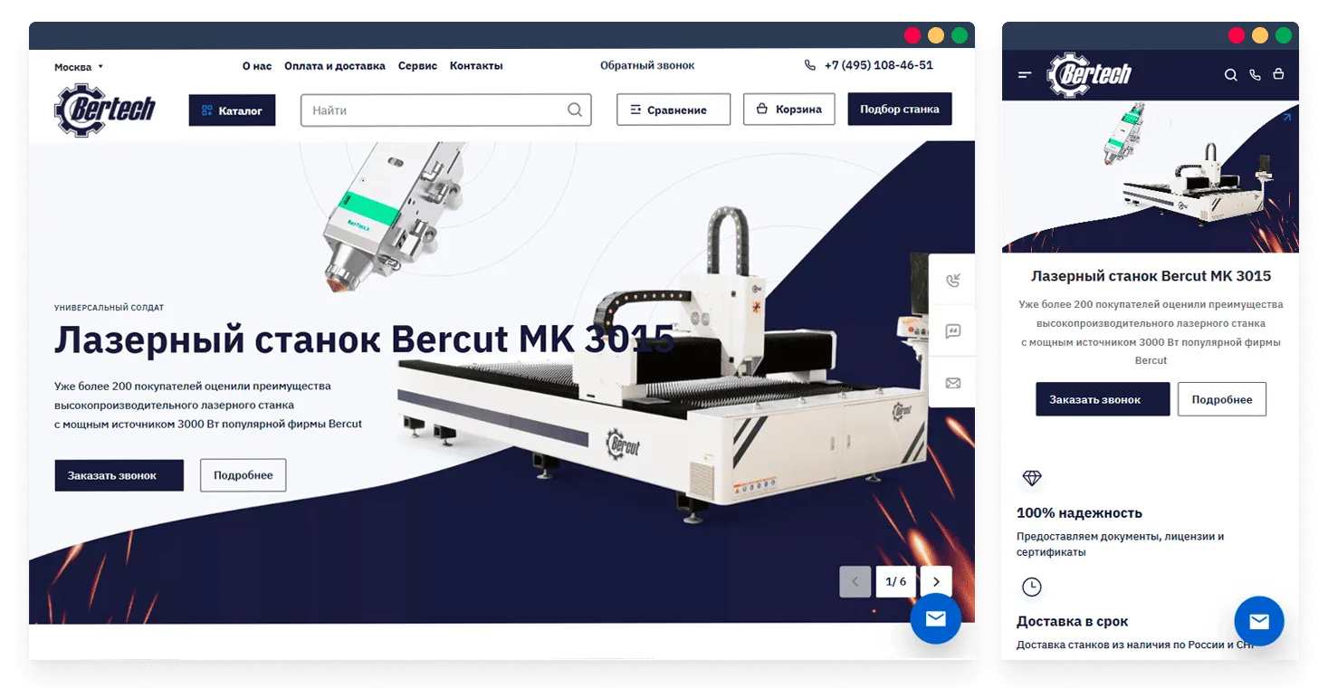 Bertech занимается поставками профессионального оборудования для обработки тонколистового и рулонного металла. Компания работает с производственными и строительными предприятиями. При разработке сайта мы учитывали специфику B2B-аудитории, широкий ассортимент оборудования и необходимость удобной навигации для разных типов клиентов.