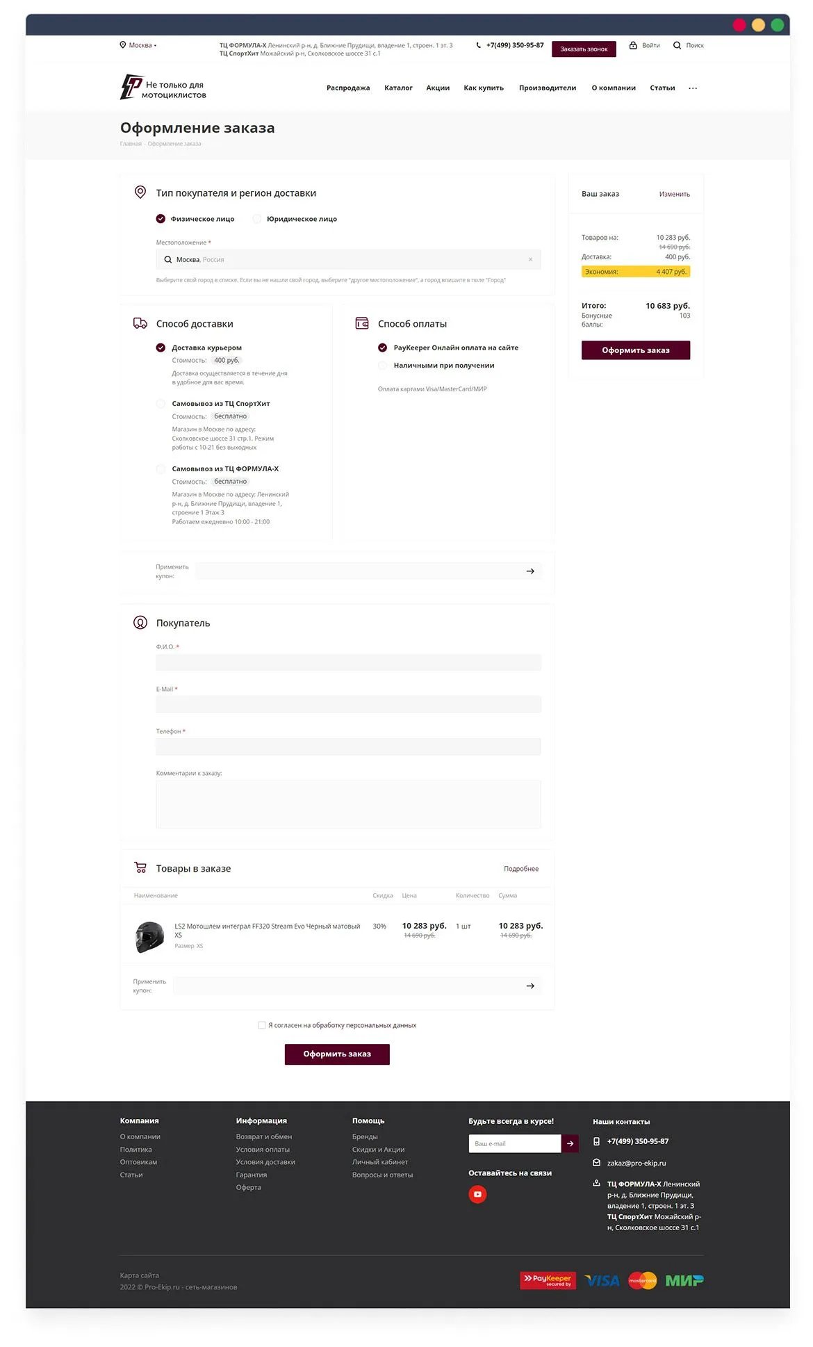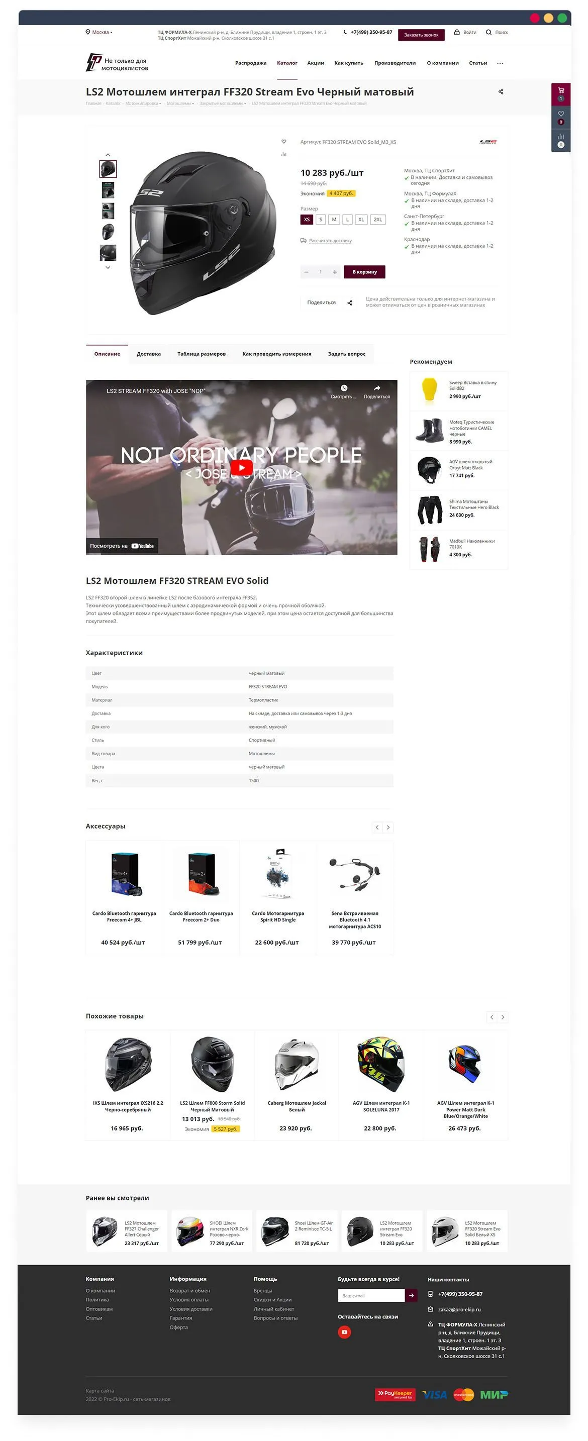 Основная задача – создать мультирегиональный сайт, так как продажа мотоэкипировки будет осуществляться в более чем 20 регионах. Разработать стильный, удобный и функциональный сайт, который будет выделяться среди конкурентов, а также наполнить товарами с других сайтов. Мы провели аудит, сравнили лидеров в конкурентной среде, выявили слабые стороны, разработали проект и приступили к его реализации.